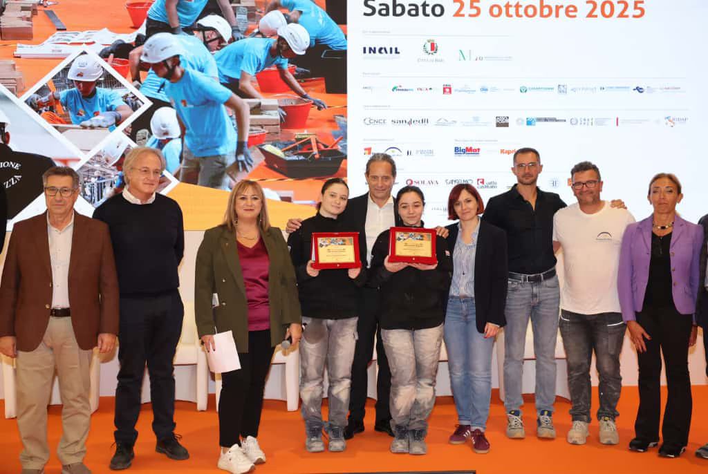 Grande entusiasmo per la finale di Ediltrophy 2025 gara nazionale di arte muraria. Particolare soddisfazione per il Formedil-Bari per aver conquistato il podio più alto del Concorso Nazionale Ediltrophy Progettazione Categoria Junior gli studenti delle classi 4A CAT e 4B CAT dell’ITT “Panetti-Pitagora” di Bari, per la progettazione della “Fontana infinity”, dotata di vasca di raccolta dell’acqua e di una fioriera realizzata con mattoni faccia a vista, con pezzi speciali e inserti in ceramica. I ragazzi si sono distinti per creatività, l’originalità del design, competenza tecnica, innovazione progettuale, e la sostenibilità dei materiali impiegati. Il manufatto è stato oggetto della gara nazionale per la categoria Senior. Inoltre Premio speciale “Giovani Promesse” alle studentesse del liceo artistico De Nittis Pascali di Bari, Buonanova Jennifer e Cataldo Julie.