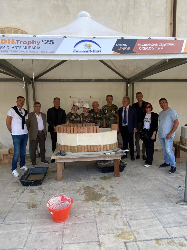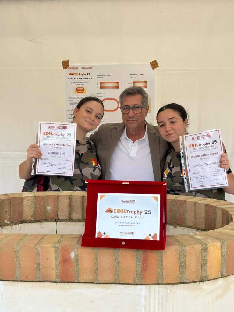 Si è da poco conclusa a Lecce la finale regionale per Puglia e Basilicata della prestigiosa gara di arte muraria Ediltrophy 2025. Il Formedil Bari, si è qualificato primo nella categoria junior, con una squadra tutta al femminile formata dalle studentesse Buonanova Jennifer e Cataldo Julie del liceo artistico De Nittis Pascali di Bari, accedendo di diritto, alla finale nazionale Ediltrophy in programma al Saie di Bari il 24 e 25 ottobre prossimi.